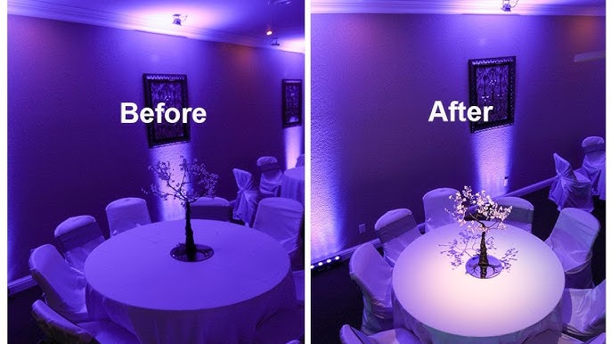 Transform the look and feel of your reception with our up lighting. As one of the first companies in Tulsa to incorporate this, we are highly experienced in creating an unforgettable atmosphere at any venue. This is much easier and budget-friendly than taking on the decoration yourself, plus the lights can be customized to mach your wedding colors, or any other color or your choice. The lights can also go to the beat of the music, and provide fantastic lighting effects for the dancing portion of your reception.